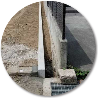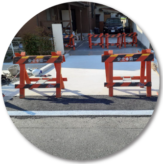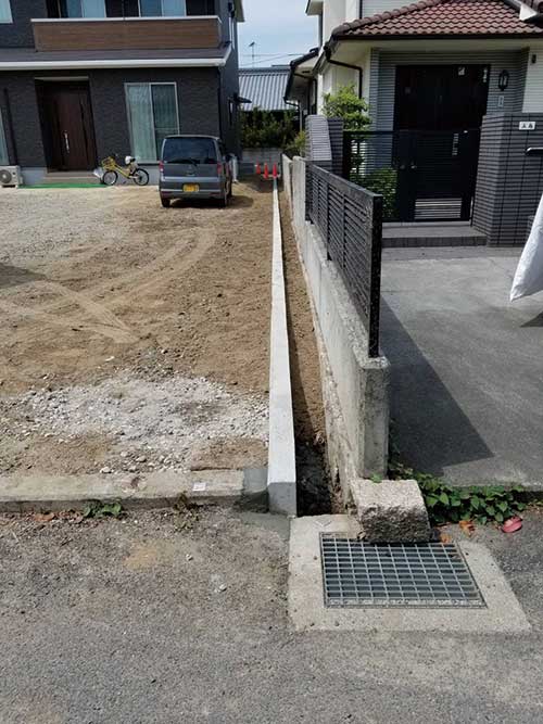 建物本体以外の外まわりの工事です。 門、塀、駐車場、アプローチ、植裁、舗装、側溝、排水工事などもお任せください。