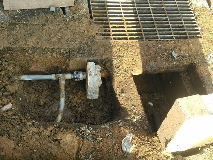 排水路や側溝などの溝の上にグレーチングを設置します。