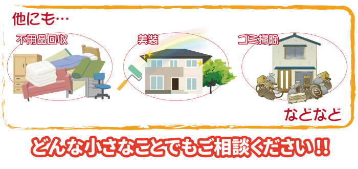 土地に関する工事から不用品回収まで、あらゆる業務を幅広く行っております。
